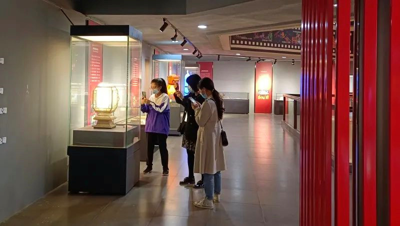 百闻不如一见。讲座之后,青年朋友们参观了中国彩灯博物馆,直观地感受到了中国彩灯文化的传承与发展,以及自贡彩灯精湛的制作技艺。面对馆内展出的《瓷器宫灯王》《吹塑纸孔雀灯》等精品彩灯和特殊制灯材料,青年朋友们惊叹不已,纷纷拿出手机拍照留念。