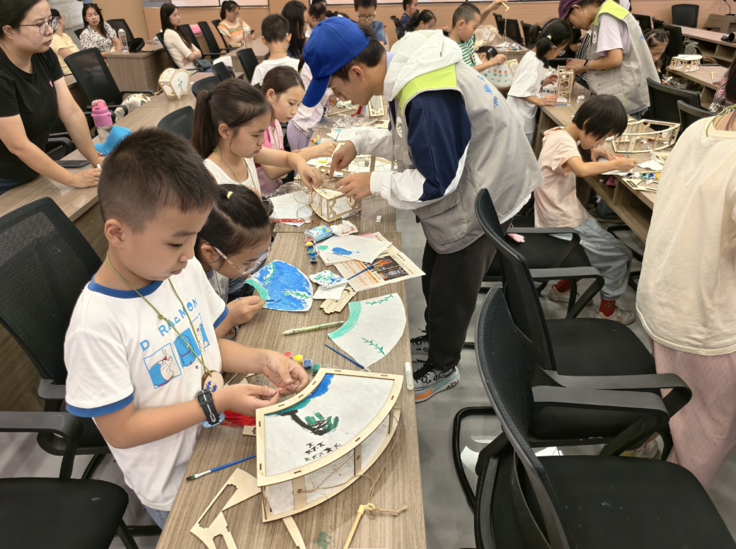 彩灯绘制环节,孩子们将观察所获的灵感转化为笔下的图画,亲手在素面灯笼上绘制出他们心中的秋天。一幅幅充满童趣又满含自然意趣的彩灯作品陆续完成,凝聚着孩子们对自然的独特感悟,传递出博物馆对传统文化与当代教育深度融合的创新追求。