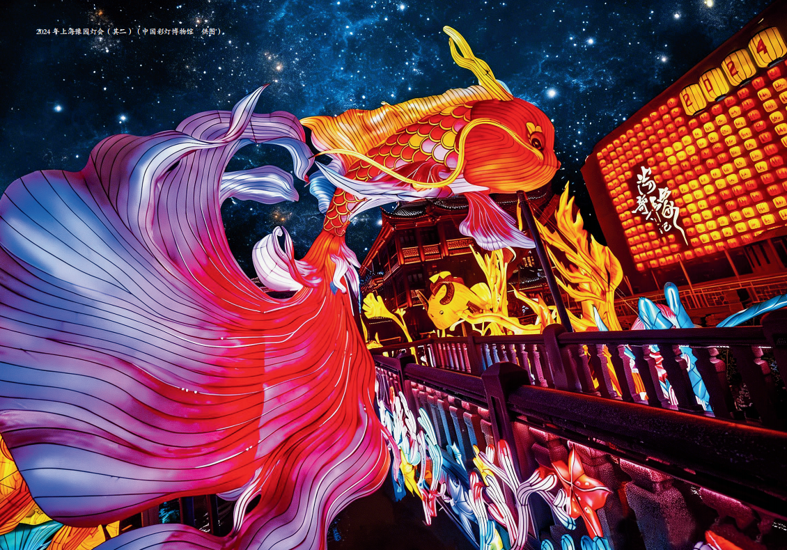 自贡灯会,绝不匮乏吉瑞祥和的仪式感,它以人之道的开启与天之道、地之道神形合一的遥相呼应,营造一派“天上”与“人间”共拥共度的良辰美景,怡神亦怡人,优雅登场于盛大节日,或庄丽闪亮于祈福场所,或巧夺天工于圆功庆典。彩灯系心灯,灯语即心语。灯会,是太平、繁荣、吉祥、幸运、欢愉、甘美、圆满等人心祈福之愿的盛世物语,是追求光明前程、瑰丽未来的热切憧憬的心灵抒意。可以说,集结于“闪亮日子”的一盏盏、一组组、一院院、一街街、一城城的华美灯火,古往今来皆照烛心灵,照亮眼神,照耀道路,照焕希望!