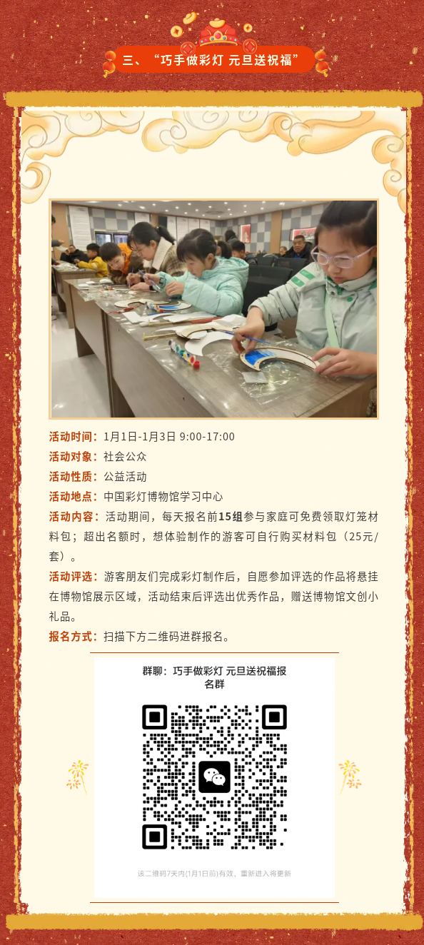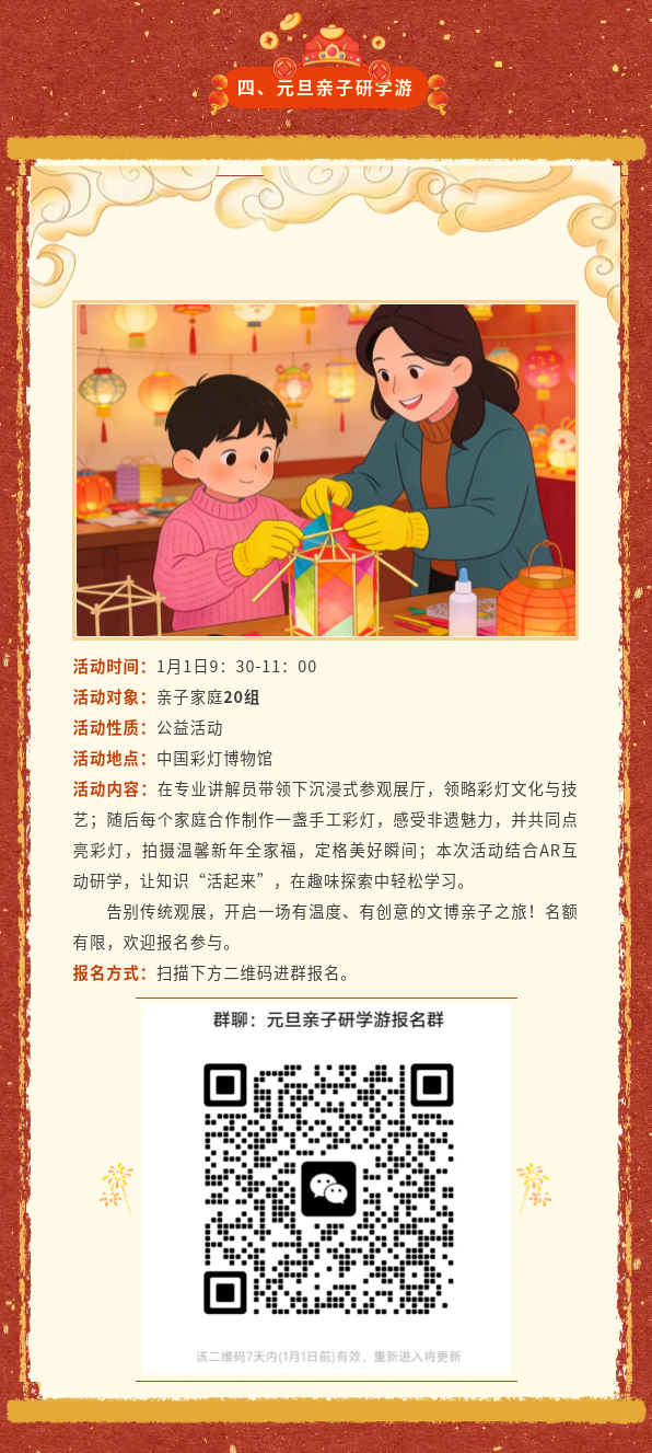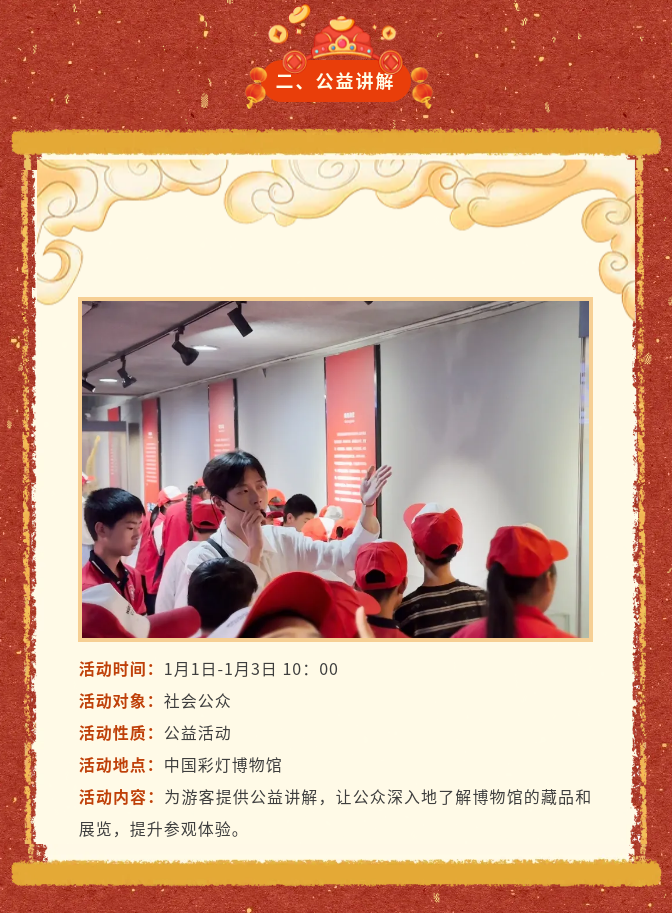 新的一年即将来临,中国彩灯博物馆将于2026年1月1日至1月3日,隆重推出“灯火长明·万象更新”主题系列活动,邀您一起触摸传统文化,感受非遗魅力,在璀璨的灯火中翻开2026新篇章!