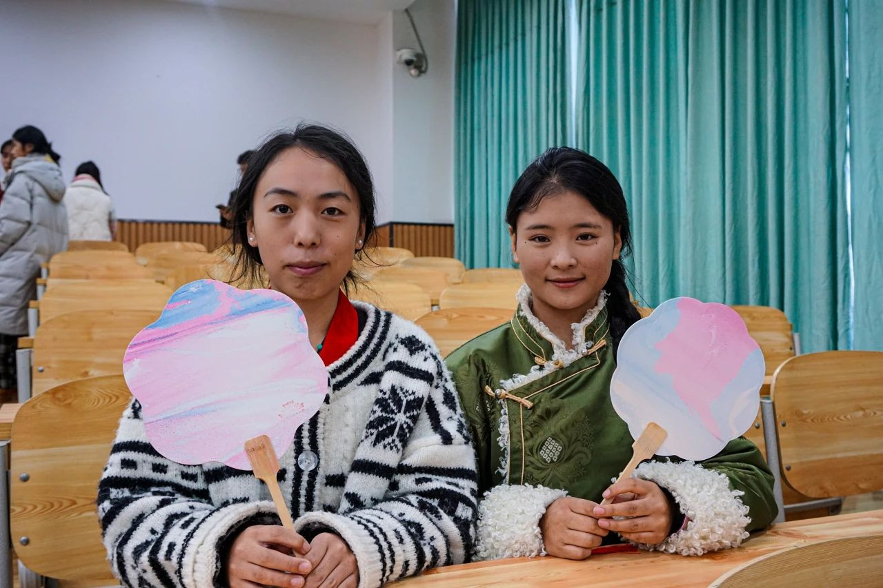 活动现场还设置了漆扇体验环节供同学们感受非遗技艺,大家先将选好的彩漆点在水面,再轻轻置入扇子,随着搅动纹路慢慢变化,在扇面留下了一道道水波的彩纹,一把把色彩斑斓的漆扇在同学们的手中诞生。最后,推选了20件优秀作品,并向获奖者颁发了小礼品。