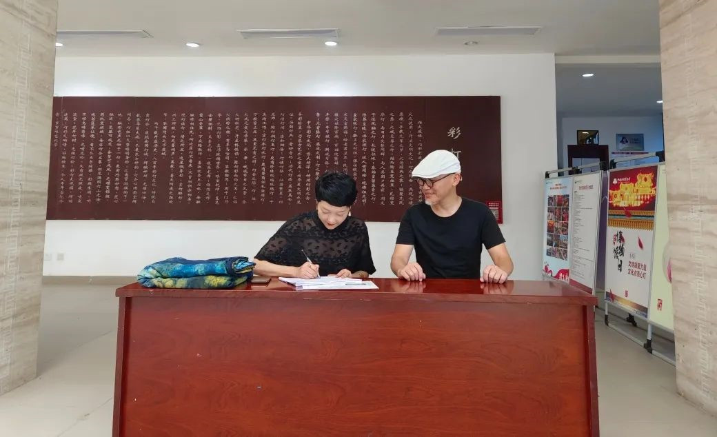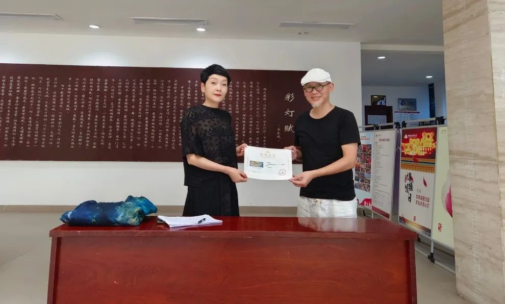 7月25日下午,扎染艺术家丁永超先生向中国彩灯博物馆捐赠其扎染作品《一灯》,博物馆副馆长徐娟为其颁发了作品收藏证书并表示感谢。