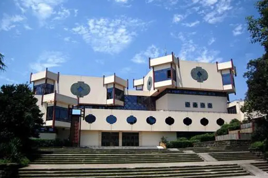 (2)建筑与环境。馆园占地约10.2万平方米、馆体建筑面积6375平方米。馆体建筑鳞次栉比,楼阁高下,既不拘一格又和谐统一,一组巨大的彩灯建筑群落风格的外观设计,获中国建筑最高奖鲁班金奖。博物馆馆碑由原中央对外宣传小组组长朱穆之题写,建馆碑记由当代著名诗人、剧作家、书法家柳倩先生题写。2019年以来,积极筹建文物库房与修复室、图书资料中心和非遗研习中心。