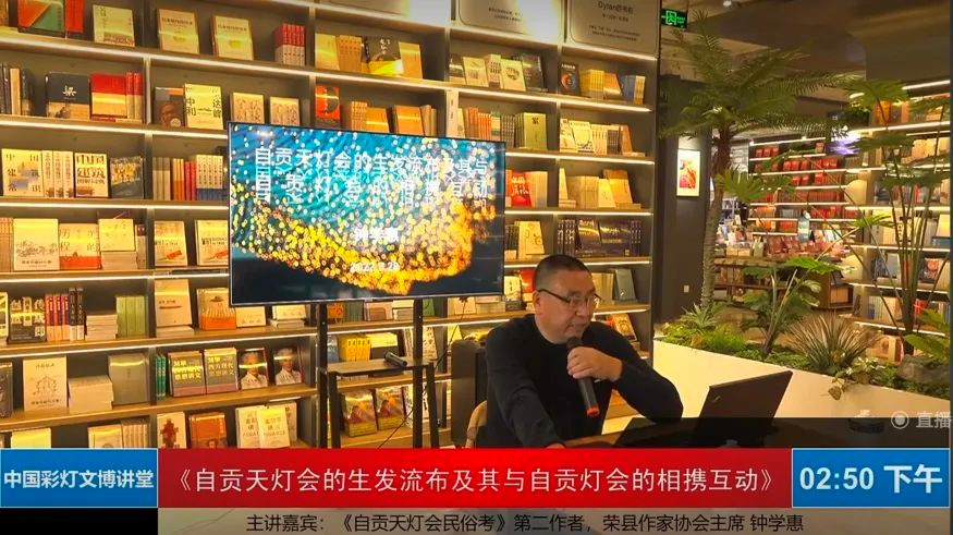 下午,中国彩灯文博讲堂《自贡天灯会的生发流布及其与自贡灯会的相携互动》专题讲座继续在新华文轩自贡书城举行。《自贡天灯会民俗考》的第二作者,荣县作家协会主席钟学惠作主讲嘉宾,给大家分享《自贡天灯会民俗考》的主要内容和课题研究背后的精彩故事。