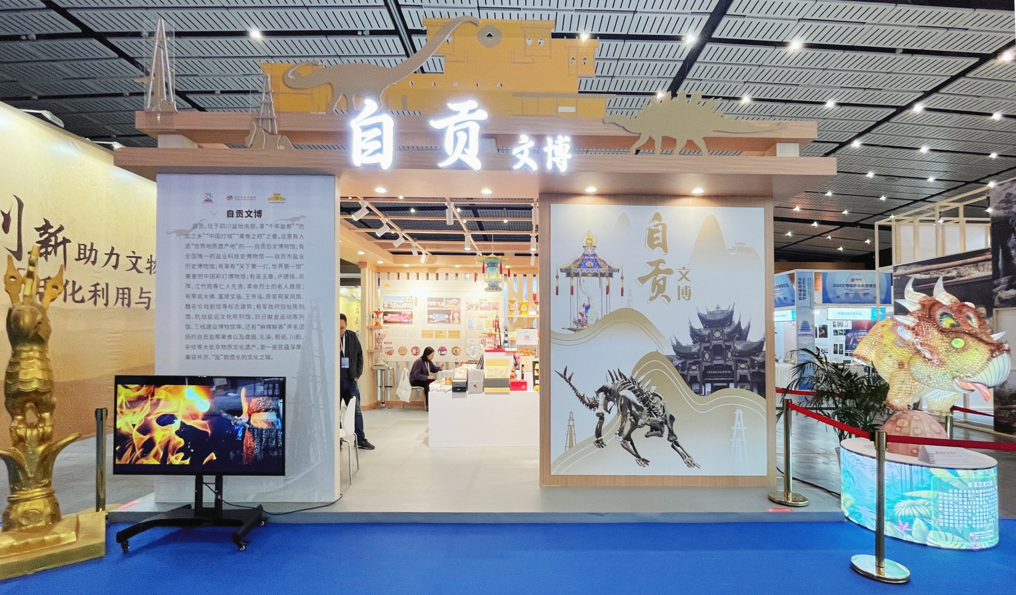 本届文保会以“深化文物和科技融合、推动系统保护与有效利用”为主题,云集了全国各地的文博机构、专家学者以及社会大众,共同深入研讨并全方位展示文物保护与利用、文化遗产保护与传承事业发展的成就,加强文物保护领域对外交流与合作,宣传中华优秀历史文化。由中国彩灯博物馆、自贡恐龙博物馆、自贡市盐业历史博物馆三家博物馆组成的自贡展团亮相文保会。