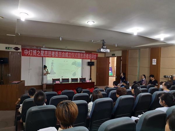 2020年8月9日下午,中国彩灯博物馆“中灯博之星”志愿者委员会成立仪式暨志愿者培训会在多媒体厅举行。中国彩灯博物馆馆长戴燕灵、副馆长张利,以及新、老志愿者们共同出席此次成立大会。中国彩灯博物馆展陈社教部主任侯梅主持会议,大会推选自贡市文化遗存保护资深专家志愿者,自贡仅有的两名全国“寻找文化遗产守护者”年度杰出人物之一的宋光辉老师作为“中灯博之星”志愿者委员会主任