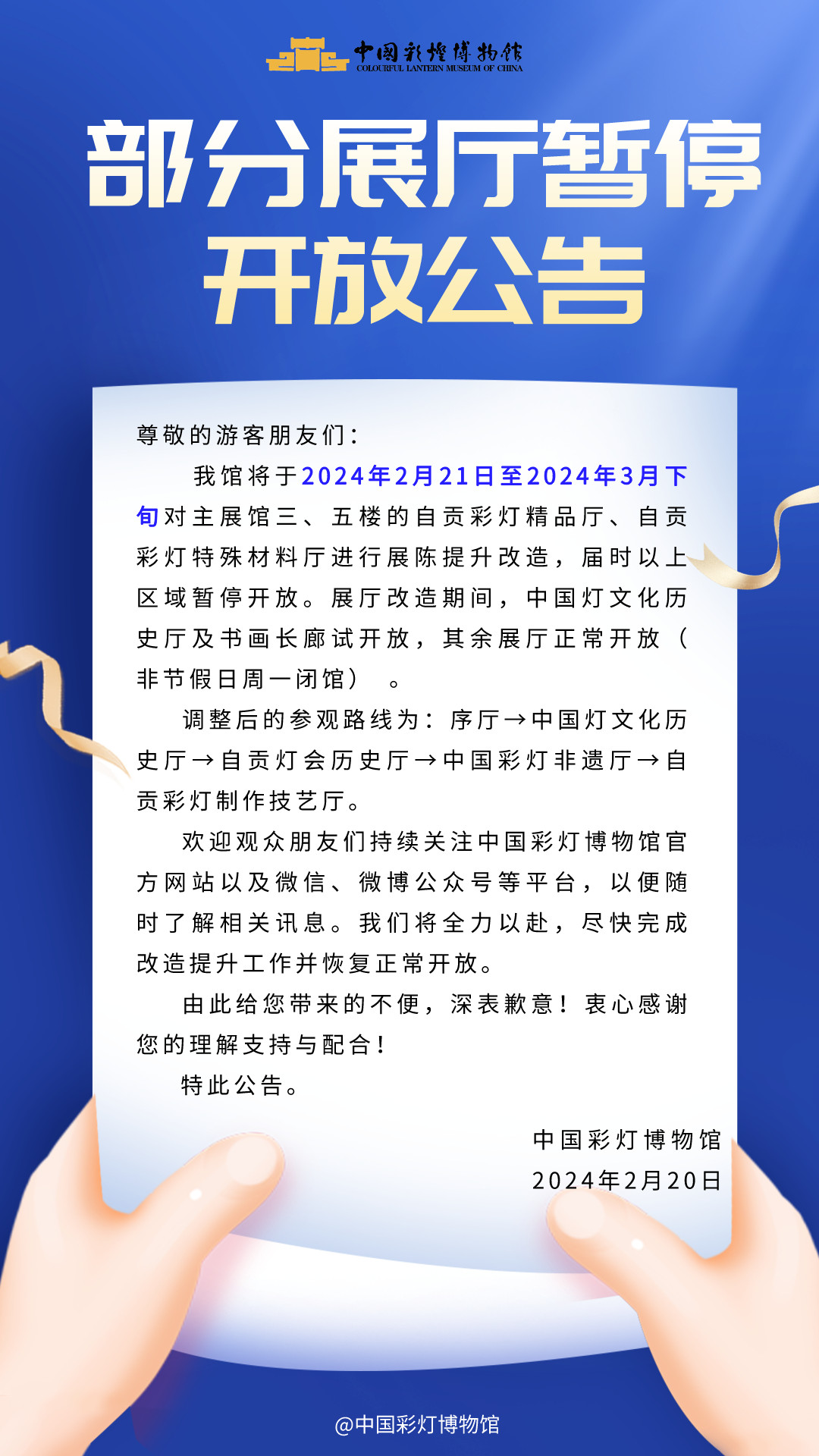中国彩灯博物馆部分展厅暂停开放公告