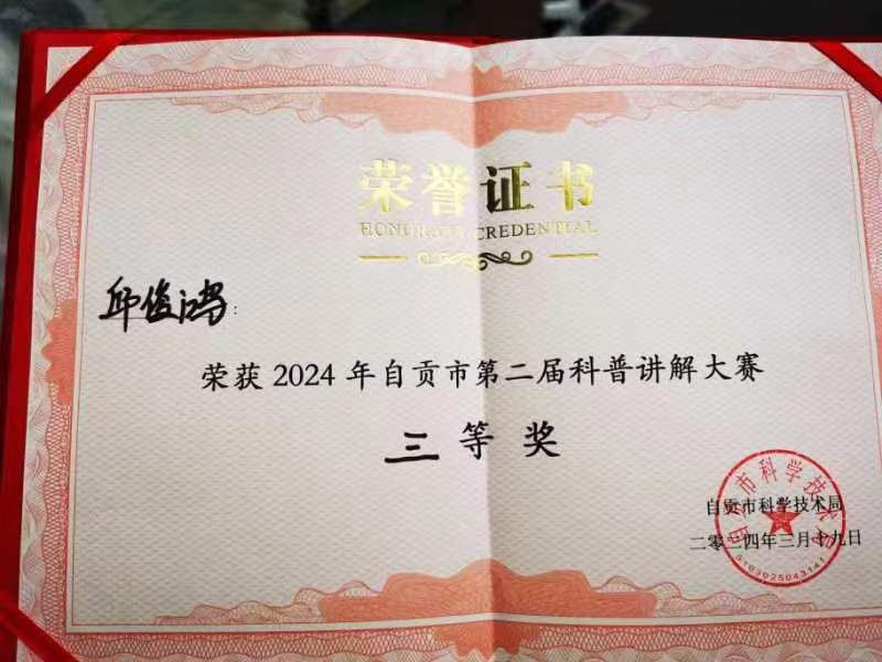 灯博馆讲解员邱俊鸿在自贡市第二届科普讲解大赛中喜获佳绩!