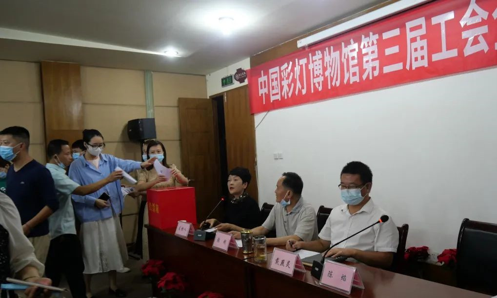 上周,中国彩灯博物馆召开了第三届工会全体会员大会,选举产生了新一届工会委员会领导班子。大会由中国彩灯博物馆支部委员、副馆长徐娟主持,全体会员参加了本次大会。会议严格遵守查验24小时核酸阴性参会,全程佩戴口罩等疫情防控要求。