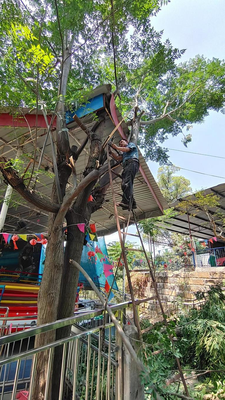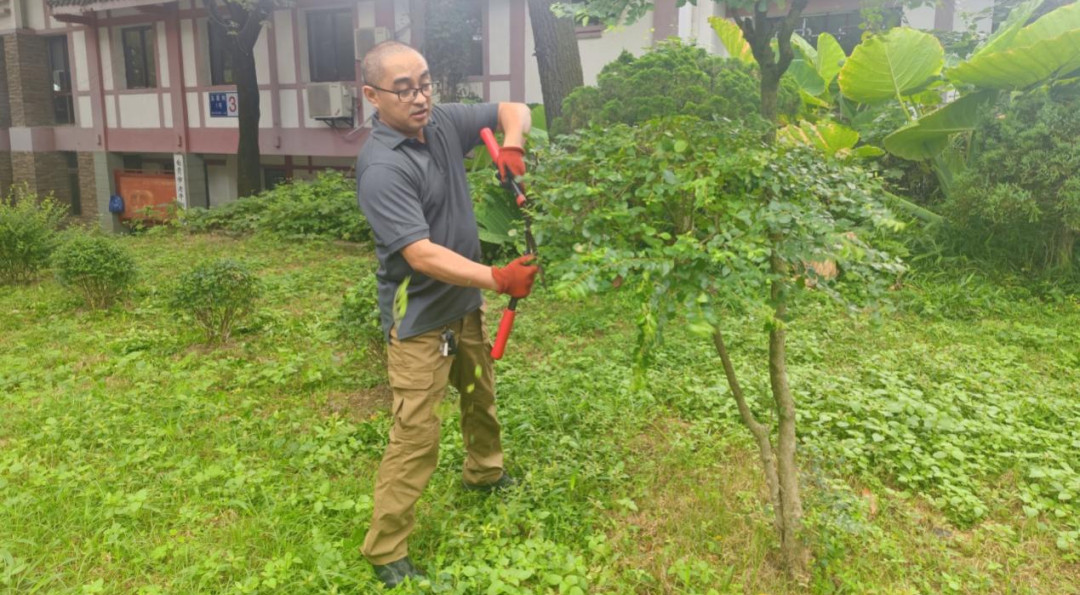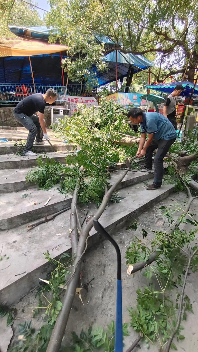 五是做好园区的安全工作。夏季大风、暴雨天气频发,枯枝杂树易折断进而引发安全隐患。园林班组在做好安全措施的前提下,及时清理园区内具有安全隐患的枯枝杂树,保证园区行人和建筑设施等的安全。