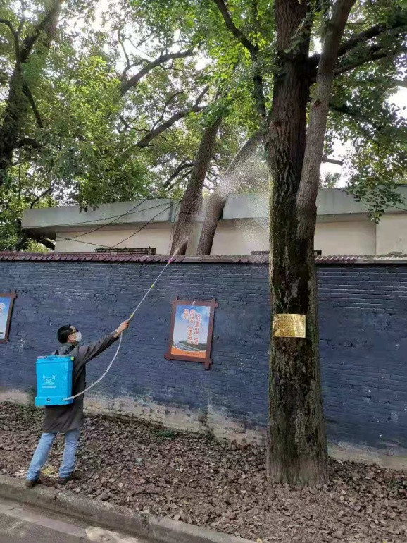 二是强化病虫害防治工作。公园300多种名贵花木,古树名木13棵,病虫害防治工作尤为重要。在“预防为主,防治结合”的原则下,合理施肥施药,保证苗木健康生长。