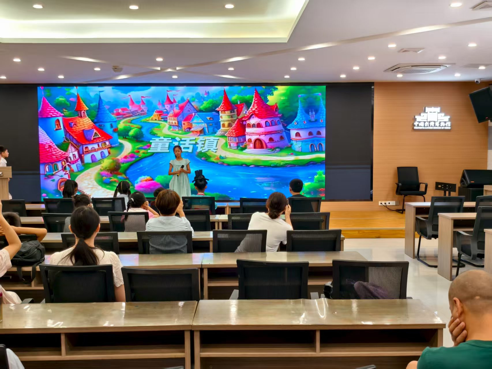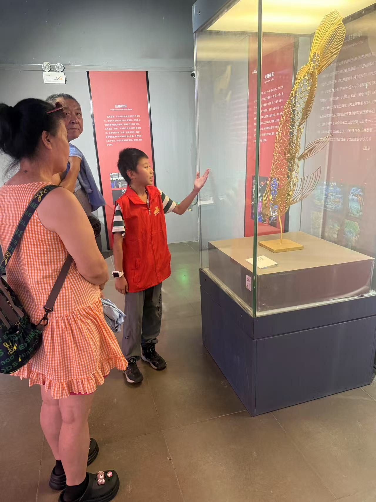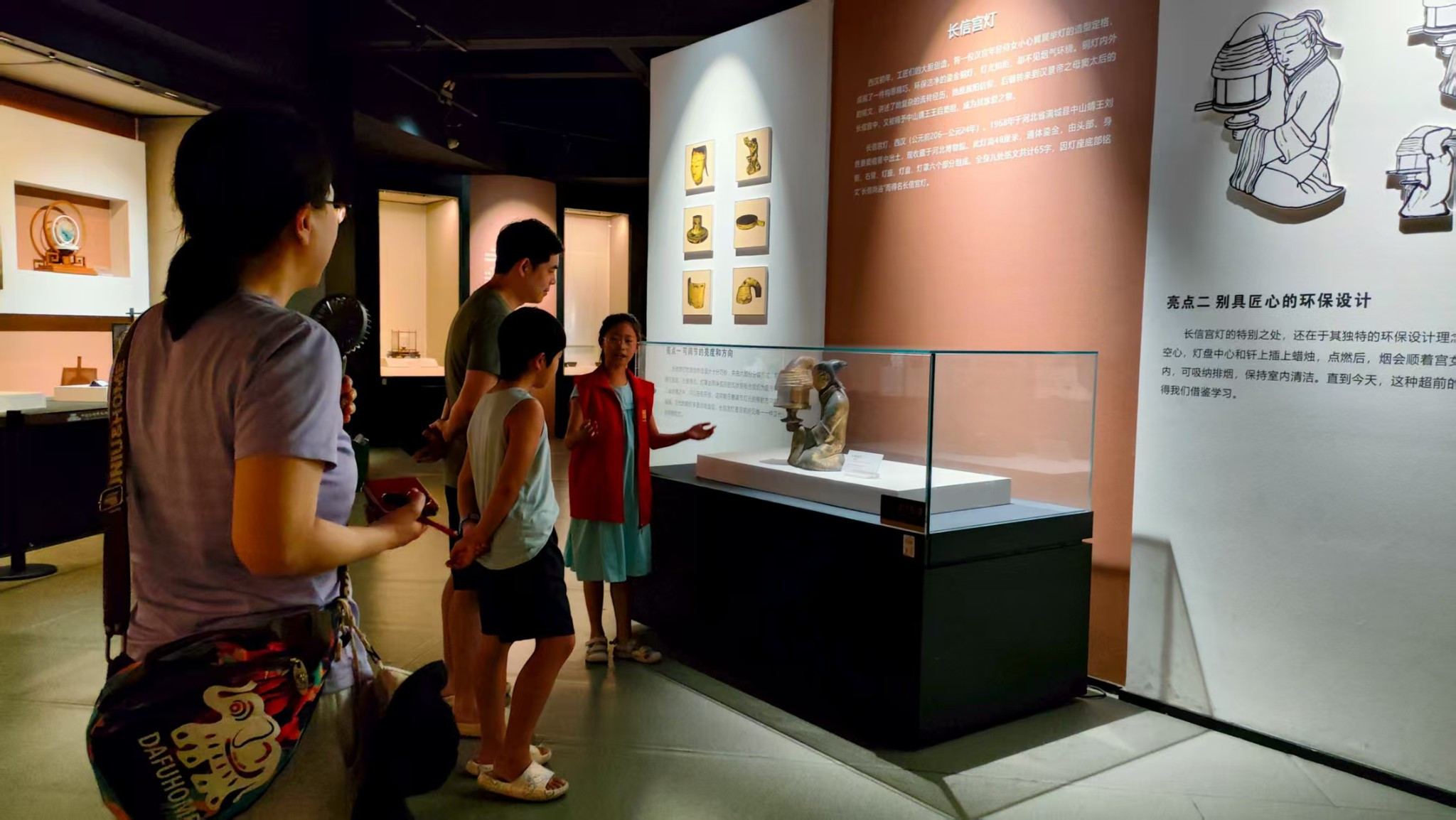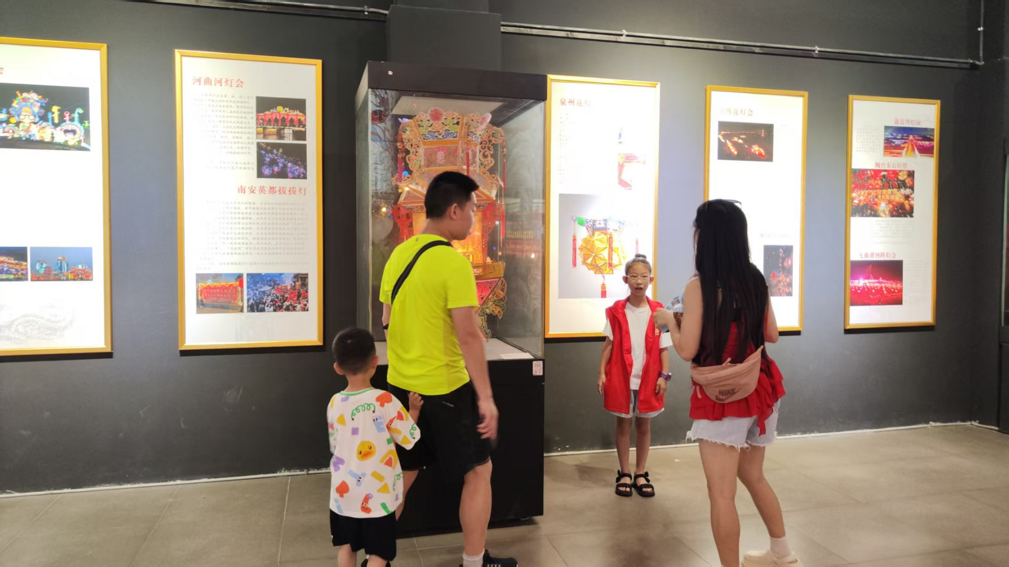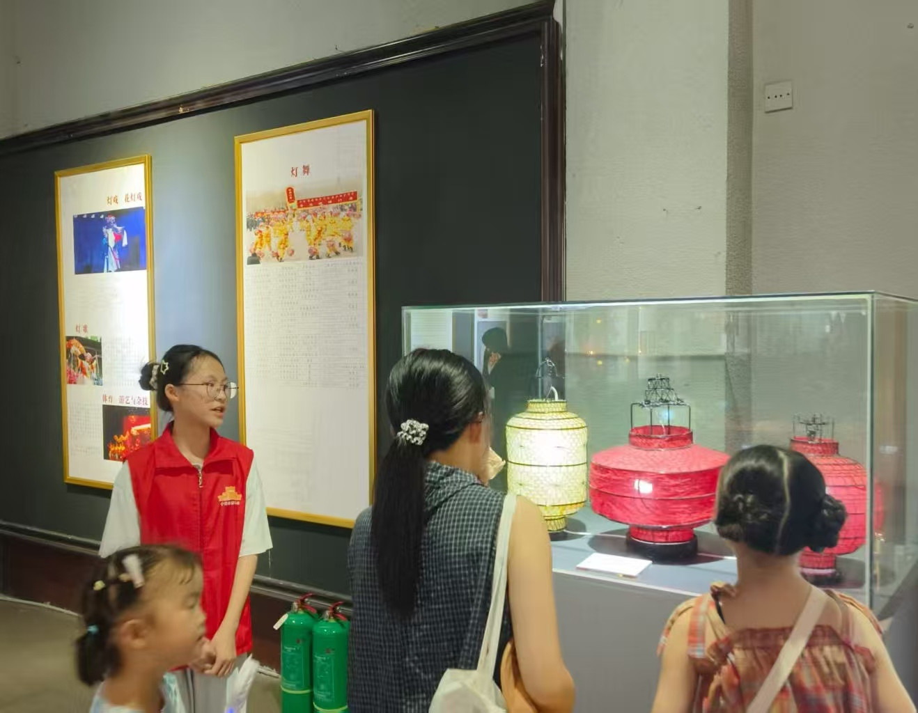 ▲展厅现场,小小志愿者学习灯组历史背景