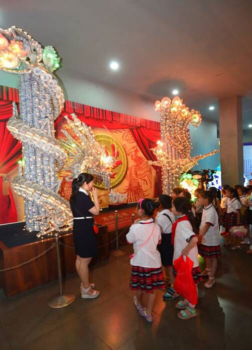 六一节当天,近200余名小朋友免费走进彩灯博物馆。在彩灯发展历史厅,通过参观自贡彩灯的历史与发展道路宣传展,大家既了解了其独特而新奇的制作工艺,又深刻领会了彩灯艺术背后蕴含的深邃文化,纷纷为自贡民间传统彩灯文化所深深震撼。在彩灯精品工艺厅,大家参观了馆陈精品灯组,孩子们被高新科技的灯品所包围,通过详细的灯组介绍和彩灯制作说明,知道了自贡制灯工艺是如何从单一静止到“形、色、声、光、动”,并与现代科学技术完美结合的独特工艺流程,充分感受了“天下第一灯”的无穷魅力。