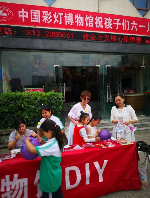 在彩灯博物馆DIY制作现场,近30余名小朋友参加了DIY现场制作。在制作中,大家充分发挥想象力,饶有兴趣的在彩色灯笼上绘制自己喜爱的图案,体验了制灯师傅们制作工艺灯的过程,体味了一把制作工艺灯的乐趣。活动中,刘子星小朋友说:“我以前只在纸上写过字作过画,还没有在灯笼上体验过,原来在工艺灯成品上作画比在纸上的难度大了许多。”一位家长说:“今天我带孩子来这里参加活动,是很有收获的,不仅让孩子过了一个不一样的儿童节,也让孩子学习到了更多中国传统彩灯文化知识,更提醒我们学生家长要注意培养孩子们对我国悠久的历史、文化的认识与学习。”