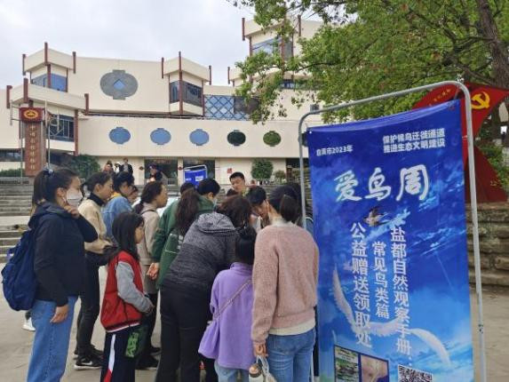 看鸟类图文展、听鸟类科普讲解、观公园常见野鸟、答鸟类趣味问题、领《盐都自然观察手册》……多种小活动吸引了众多来往市民的参与,同时也吸引了从宜宾南溪罗龙小学来中国彩灯博物馆进行灯文化研学的孩子们。
