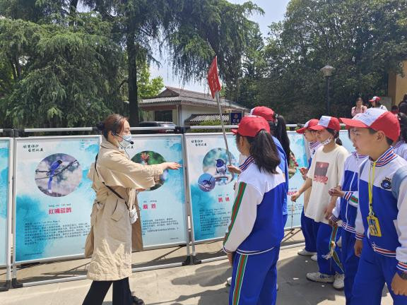 博物馆科普老师引领同学们参观了“爱鸟周”科普展览,了解野生鸟类的知识,图文并茂的展板加上科普老师有趣的讲解,让同学们了解了“爱鸟周”的由来和目的,知道了更多小鸟的名字。一位同学惊讶地说“原来这就是珠颈斑鸠啊,经常在身边见到,却叫不出名字!”,一边说还一边将展板上鸟类名字记到笔记本上。
