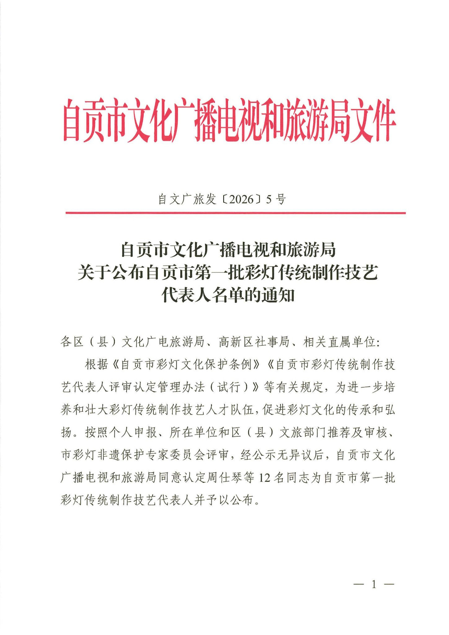 附:自贡市文化广播电视和旅游局关于公布自贡市第一批彩灯传统制作技艺代表人名单的通知