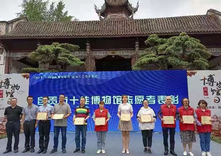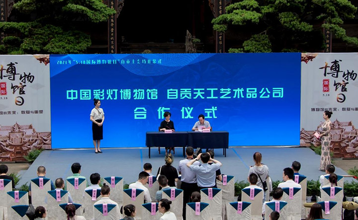 5月17日,由市局主办、本馆参与承办的自贡市2021年“国际博物馆日”、“中国旅游日”主会场开幕式在自贡市盐业历史博物馆举行。活动现场,本馆14名职工表演的小合唱《寻找与守望》,表达了广大文博人坚守历史文化的博大情怀;博物馆与自贡天工艺术品公司签订了馆企合作共建彩灯+扎染非遗研学暨文创研发基地的协议,双方将携手开展以中小学生博物馆参观、非遗科普教育、扎染与彩灯制作体验等为主要内容的研学及非学生群体党群、工会活动,合作开展“彩灯+扎染”博物馆文创产品、旅游纪念品和创意灯品的研发与市场营销;朱厢伟、杨宗翔2名博物馆志愿者被市局表彰为2020年度文博系统十佳志愿者,本馆开展的手绘灯笼体验等灯文化科普活动,吸引了大批观众参与。