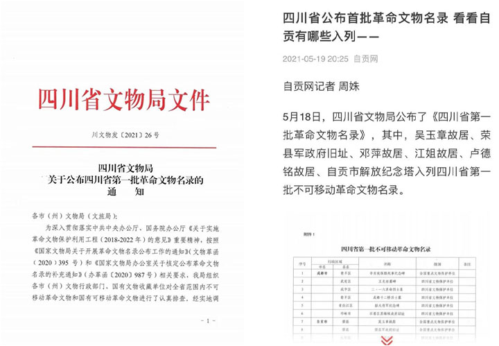 5月18日,省文物局公布了《四川省第一批革命文物名录》,省保单位自贡市解放纪念塔入列不可移动革命文物名录。自贡网等媒体进行了及时的宣传报道。