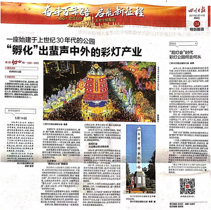 5月中旬,省级“奋斗百年路、启航新征程”初心.建党百年全媒体报道活动走进自贡彩灯公园,通过挖掘公园90年建园历史,《四川日报》14日用大半版的篇幅,刊发了《一座始建于上世纪30年代的公园,“孵化”出蜚声中外的彩灯产业》和《“后灯会”时代彩灯公园何去何从》两篇重磅文章,川报观察等新媒体及时转发,引起社会的广泛关注和各界的热议与思考。