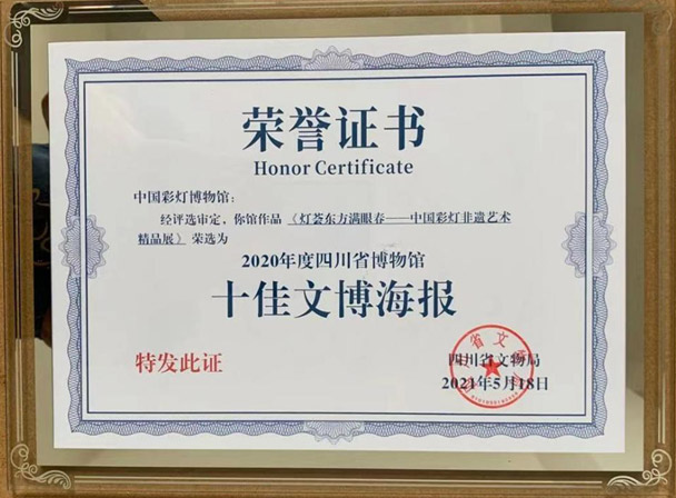 根据省文物局对全省第45个国际博物馆日活动的安排,本馆结合自身资源,认真梳理去年工作,积极组织作品参加2020年全省博物馆系统十大精品陈列展览等十佳评选活动。通过专家评审和公众投票,《灯荟东方满眼春—中国彩灯非遗精品展》宣传海报获评“十佳文博海报”,《满满带你逛灯博》获评“优秀文博短视频”,《灯荟东方满眼春—中国彩灯非遗精品展》获得“十大陈列展览精品”专家提名,在公众投票环节获高票。