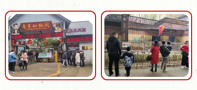 重装后的公园动物园、盆景园和众多独具魅力的游乐项目,成为假日家庭亲子游的好去处。由于今年恰逢虎年,节日期间不少游客走进自贡动物园,看老虎、沾虎气,虎年观虎成了众多市民尤其小朋友们迎接新年的打卡项目。春节“黄金周”,公园动物园累计接待观众0.35万人,其中青少年免费参观0.17万人,实现门票收入3.2万元,同比分别增长25 %、12%和30 %。