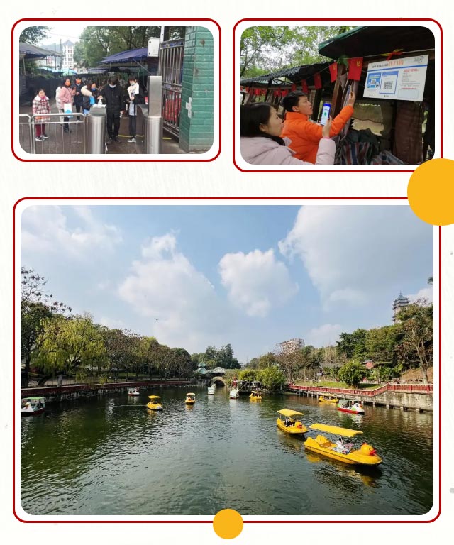 为确保广大游客新春游园欢乐祥和,安全有序,馆园在春节期间增加了值班值守人员,加强了安全巡查和隐患排查,强化了游乐设施安全运行管理,开展了消防安全培训演练,做好信息统计上报,夯实节日安全责任体系和工作机制。为保障入园群众生命安全,身体健康,馆园持续加大疫情防控落实与巡查,压紧“四方责任”,严格落实进入人员佩戴口罩、体温检测、亮码扫码通行、限流错峰预约等“刚性要求”,做好日常清洁、通风和消毒,减少人员聚集,切实织密织牢疫情防控网,确保了春节黄金周接待有序,安全无事故。假日前和节日期间,馆园狠抓创文迎检、假日文旅市场综合整顿,大力开展公园环境风貌和经营秩序整治,落实清扫保洁常态化保持、经常性监督,及网格化巡查“全覆盖”,为游客提供一个“优美整洁、安全有序”的假日游园环境。