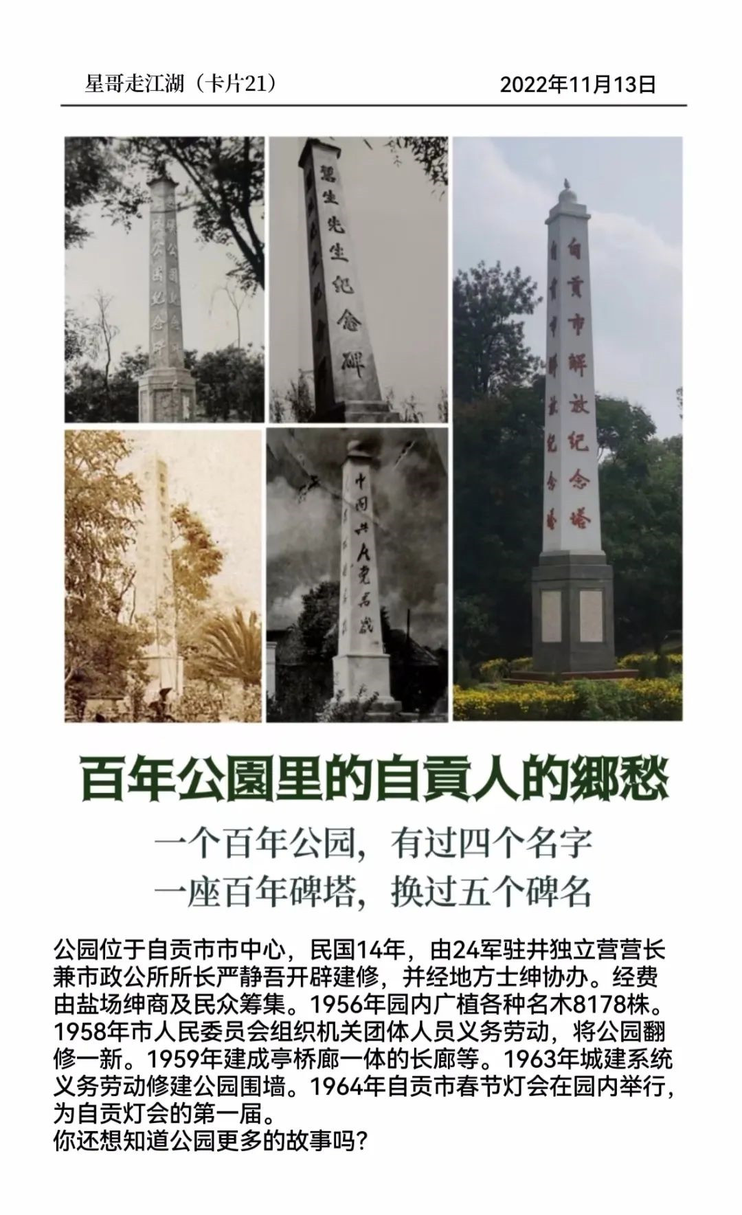 ——摘自《【星哥走江湖】公园里的百年乡愁》