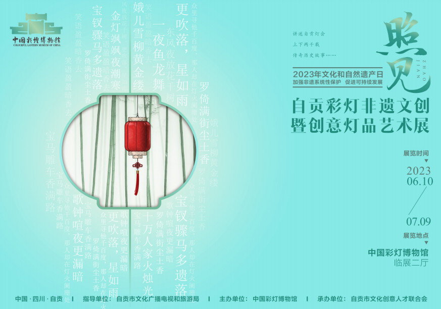 在2023年文化和自然遗产日到来之际,由自贡市文化广播电视和旅游局指导,中国彩灯博物馆主办,自贡市文化创意人才联合会承办的“照见——自贡彩灯非遗文创暨创意灯品艺术展”,在本馆临展二厅集中展出一个月(6月10日-7月9日)。