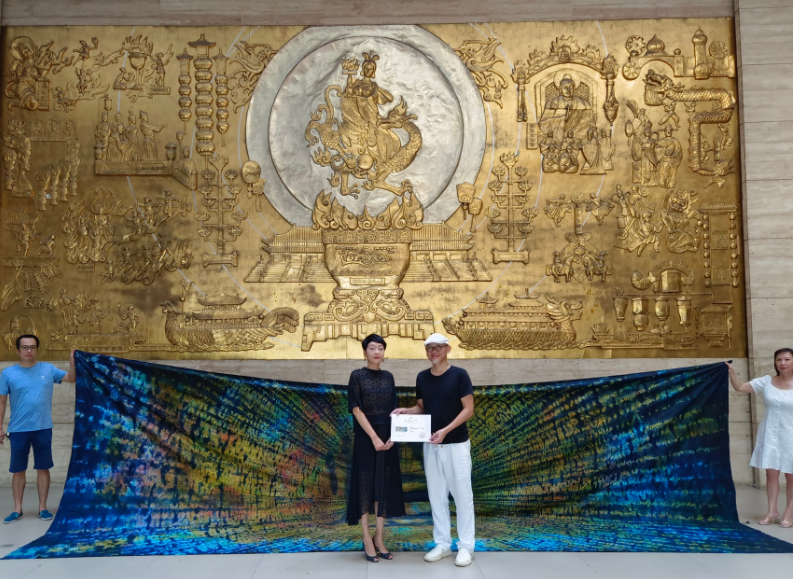 7月25日下午,扎染艺术家丁永超先生向中国彩灯博物馆捐赠其扎染作品《一灯》,博物馆副馆长徐娟为其颁发了作品收藏证书并表示感谢。