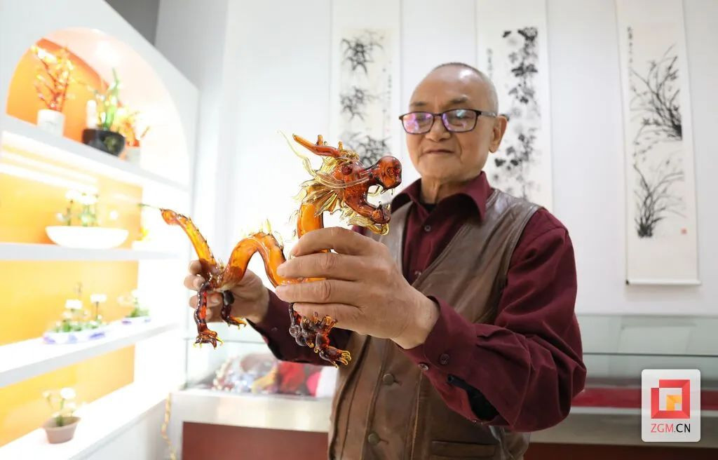 ▲彭正华玻璃吹塑作品《浪漫天车》《龙》,图源自贡网。