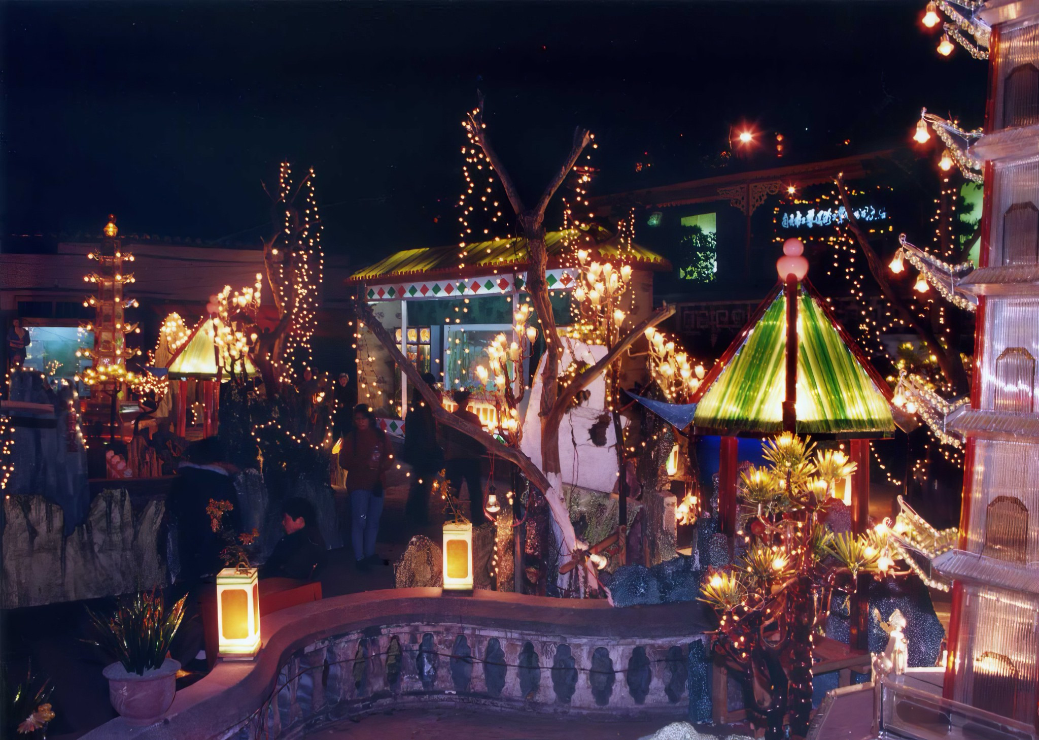 ▲第一届自贡国际恐龙灯会经贸交易会大型吹塑灯《岁寒三友》以松、竹、梅为主体进行造型创作,后展出北京、上海、新加坡等地。图源自贡网。