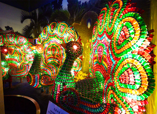 用废旧玻璃瓶灌注的彩色水精心捆扎而成,是自贡灯会的艺术奇葩。化腐朽为神奇,可谓独具匠心。