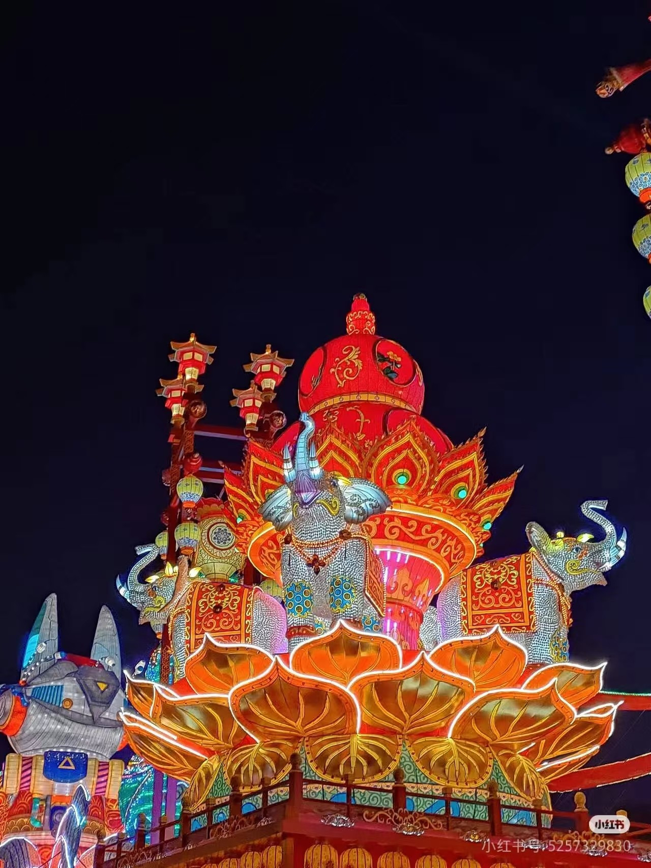 ▲第二十九届自贡国际恐龙灯会灯组《万象更新》使用十二余万个蚕茧附着于四只大象表面。