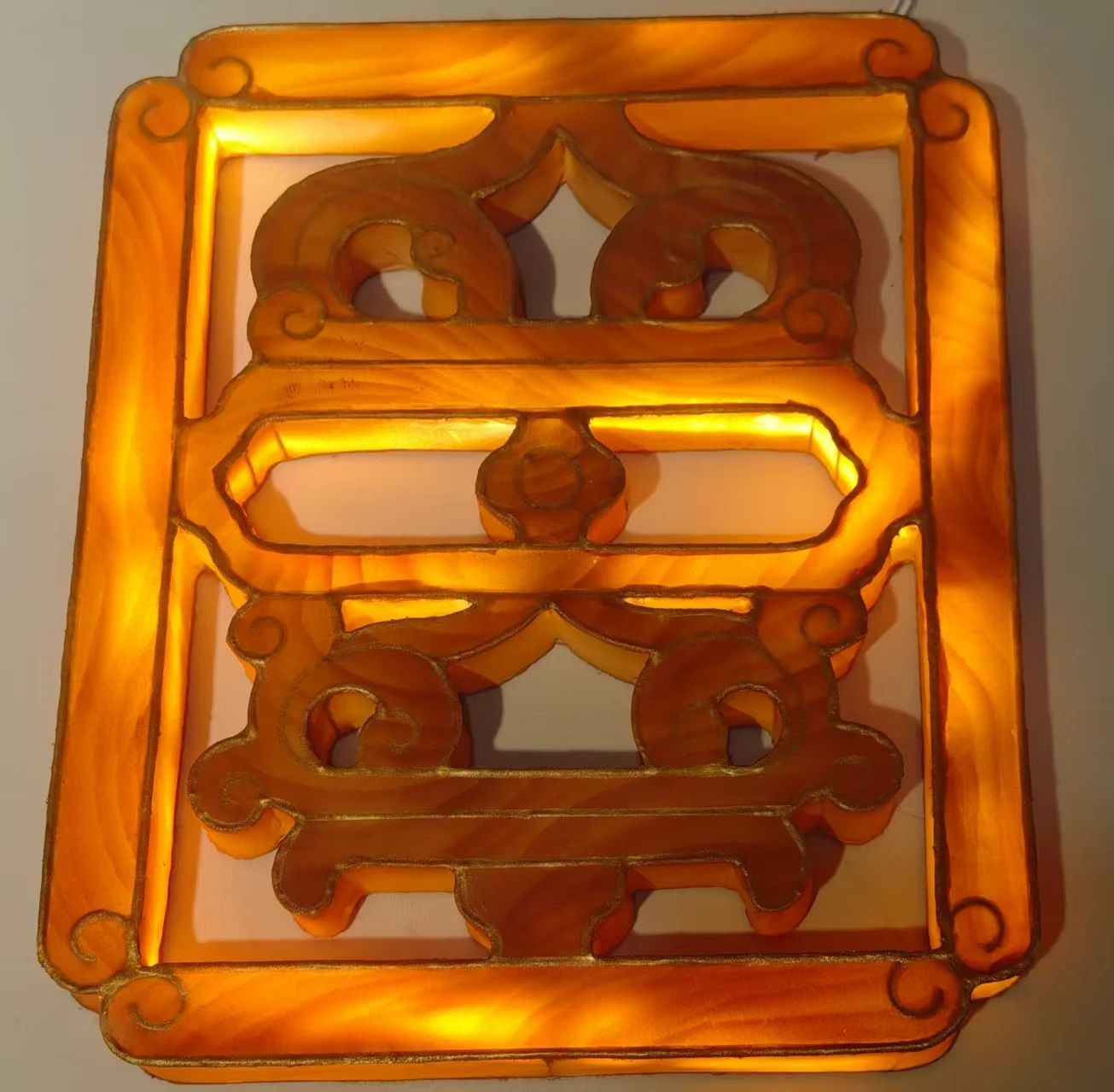 该技艺不仅能在板型材料上进行梳花,也可以在多种类型的灯品上呈现镂空效果,适应不同材料与造型需求,使画面呈现出千变万化、多姿多彩的景象。