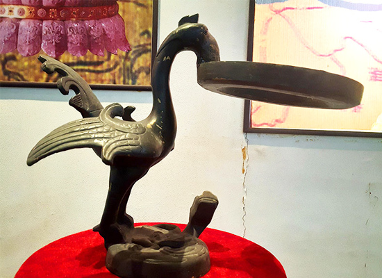 年代西汉。1968年於于河北满城县中山靖王刘胜墓出土。外观优雅雋秀,设计精致,是汉代青铜器之代表作。本作品为西汉时期的照明用具。